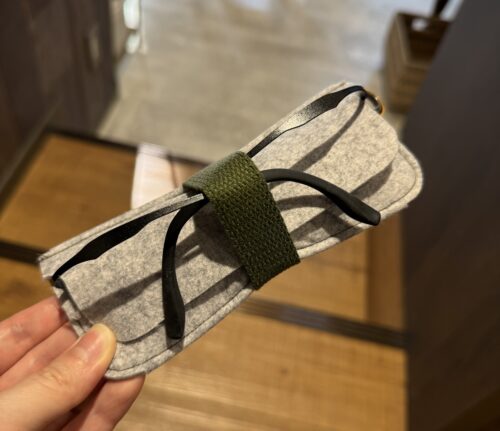 頭を包み込むような形状の丈夫で軽くしなやかなβチタン製テンプルが特徴の、