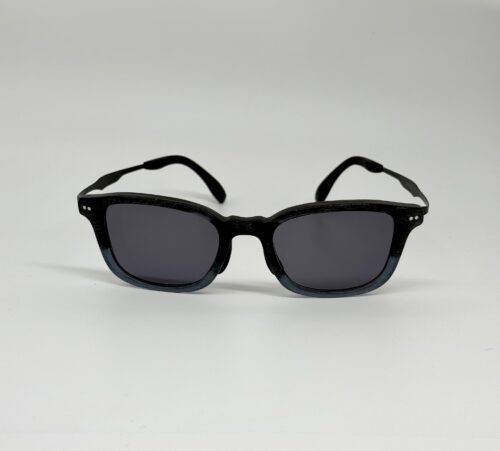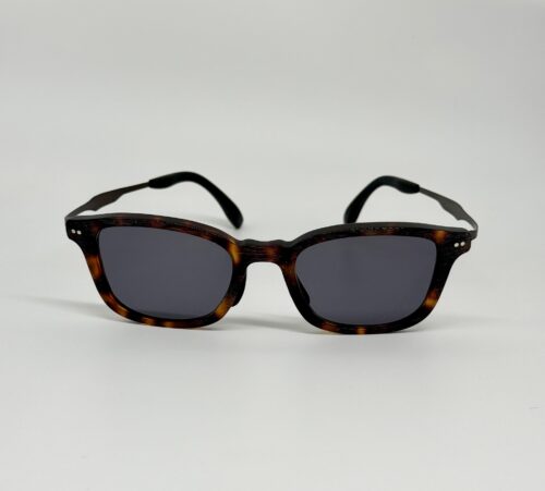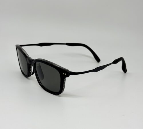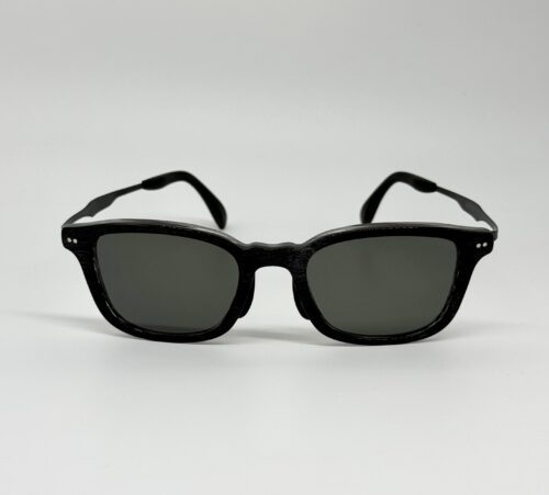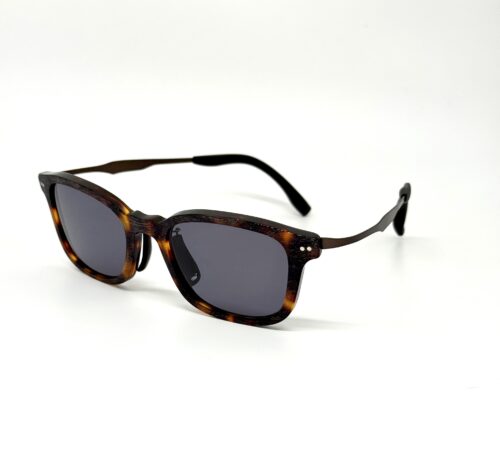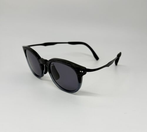 アセテート素材の表面に木目加工を施したフロントデザインと、