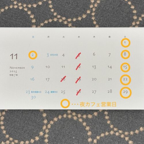 夜カフェは毎週土曜日と2日(日)を予定しております。
